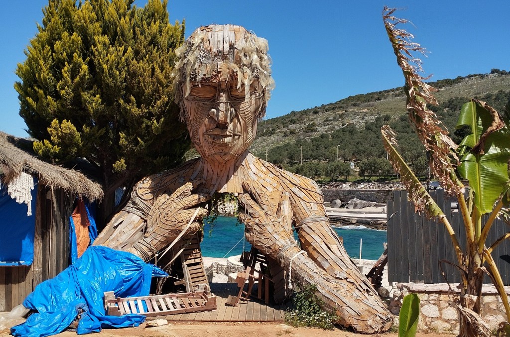 Nach einer Woche in Tirana reise ich gemeinsam mit Mark in den Süden – hinunter in die Küstenstadt Saranda, in der mein Roman spielen soll. Ich kehre zurück an den African Beach, wo ich vor eineinhalb Jahren die erste Idee für diese Geschichte hatte. Der weiße Kies unter meinen Füßen ist warm, das Wasser beim Schwimmen noch schmerzhaft kalt an der Haut. Diese Klarheit! Grün wie Glas am Ufer, dann türkis, dann tief strahlend blau.