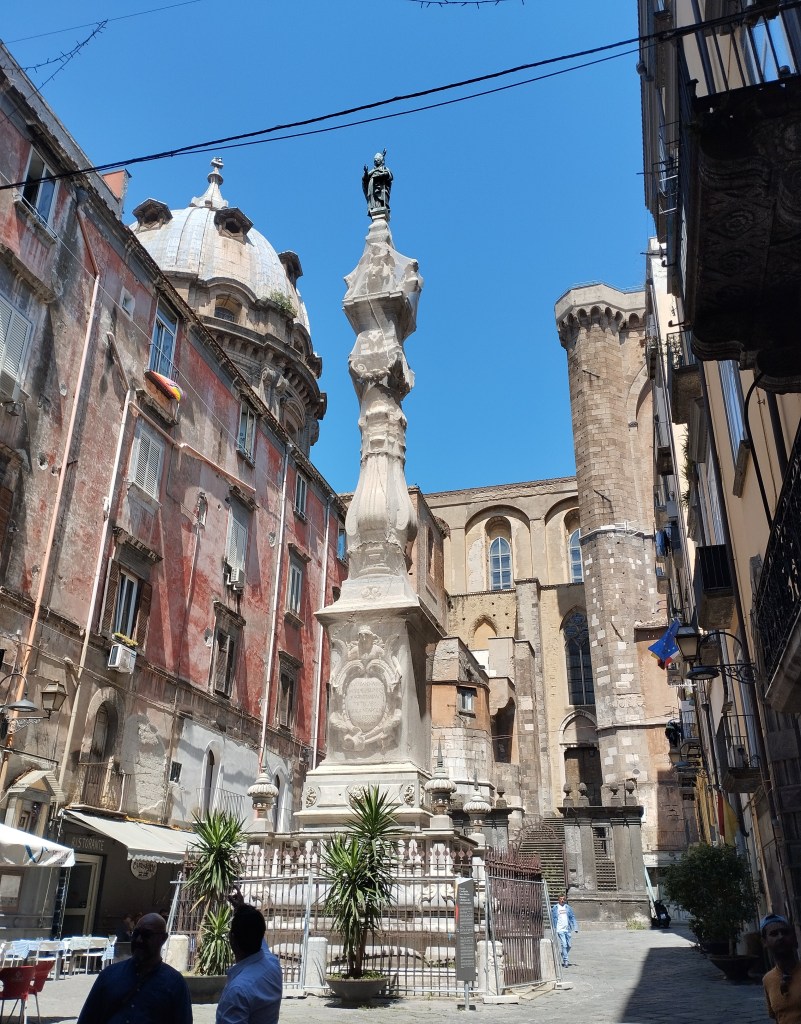 Ich habe es früher schon geschrieben und ich kann es nur wiederholen: Neapel ist für mich die schönste Stadt, die ich kenne, weil das scheinbar Unvereinbare hier nicht voneinander getrennt ist. Hier zierliche weiße Säulen inmitten des dschungelartigen Grüns der Parks im Frühling; draußen vor dem Tor tanzt ein Mann mit nur einem Schuh zu einer unhörbaren Musik und streckt den vernarbten, nackten Fuß in die Luft.